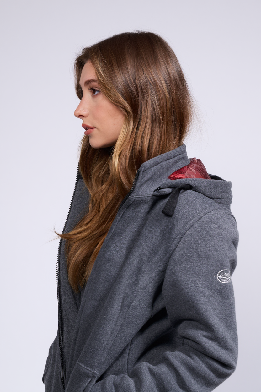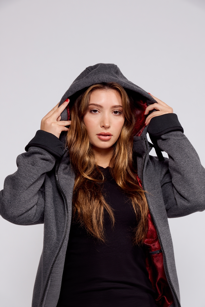 Vestibilità media studiata per seguire le curve naturali del corpo consentendo al contempo movimenti senza restrizioni. La struttura esterna pulita è contrastata da una fodera jacquard rossa distintiva, un tocco discreto che rivela le intenzioni.